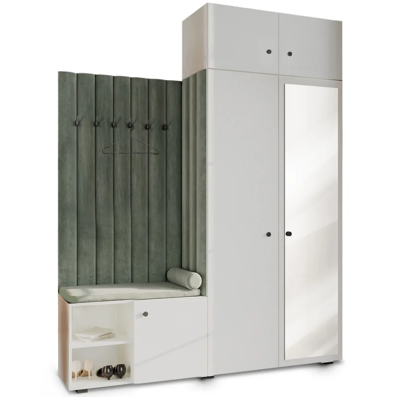 Garderoba Aria wersja 3 biała z lustrem i nadstawką uchwyt gałka