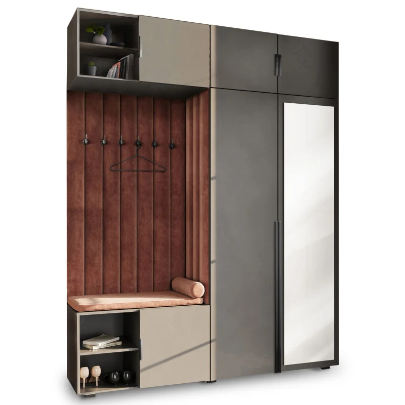 Garderoba Aria Hexa wersja 4 szara z lustrem, nadstawką i szafką wiszącą