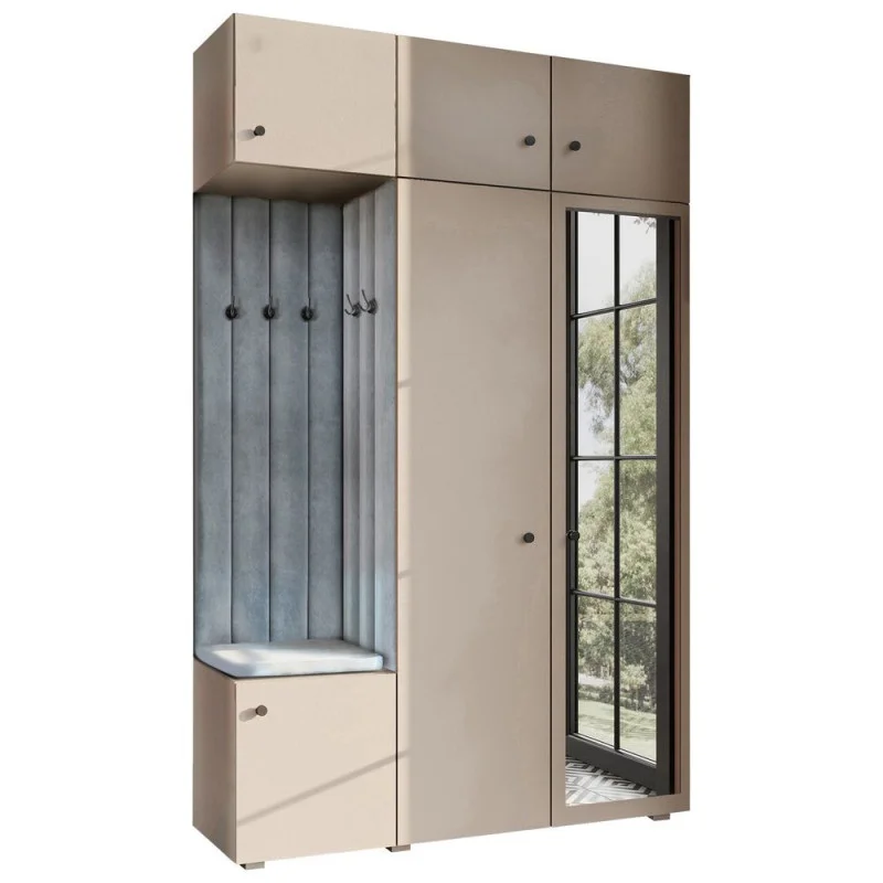 Garderoba Aria wersja 7 beżowa z lustrem nadstawką i szafką wiszącą uchwyt gałka