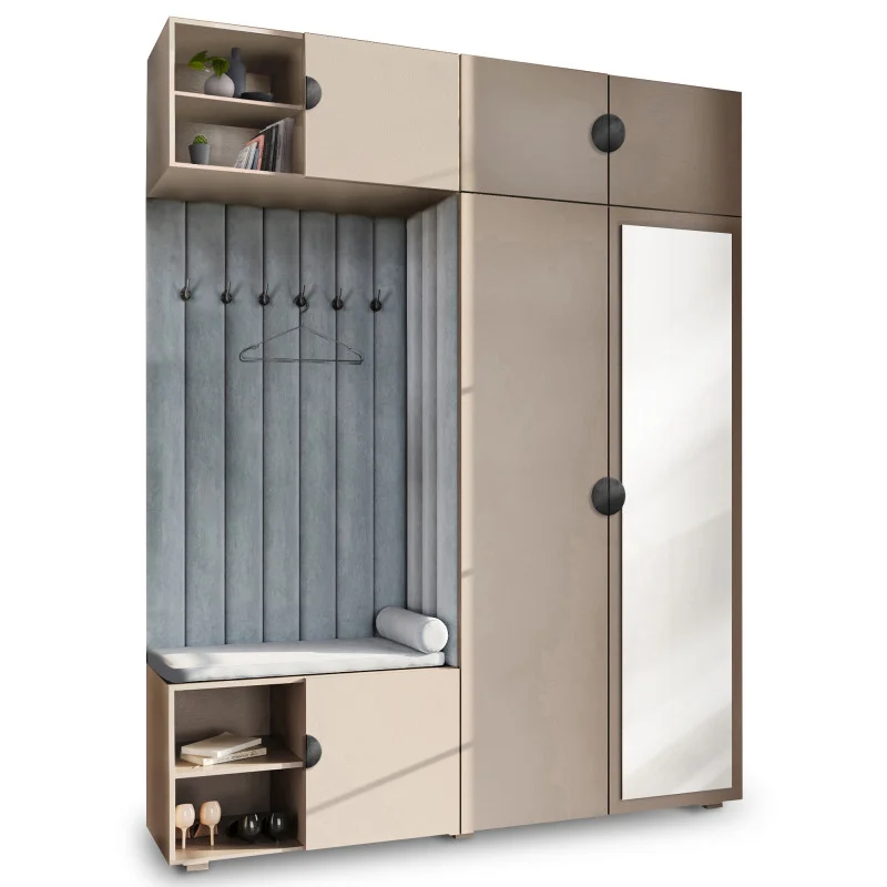Garderoba Aria wersja 4 piasek pustyni z lustrem, nadstawką i szafką wiszącą uchwyt półokrągły