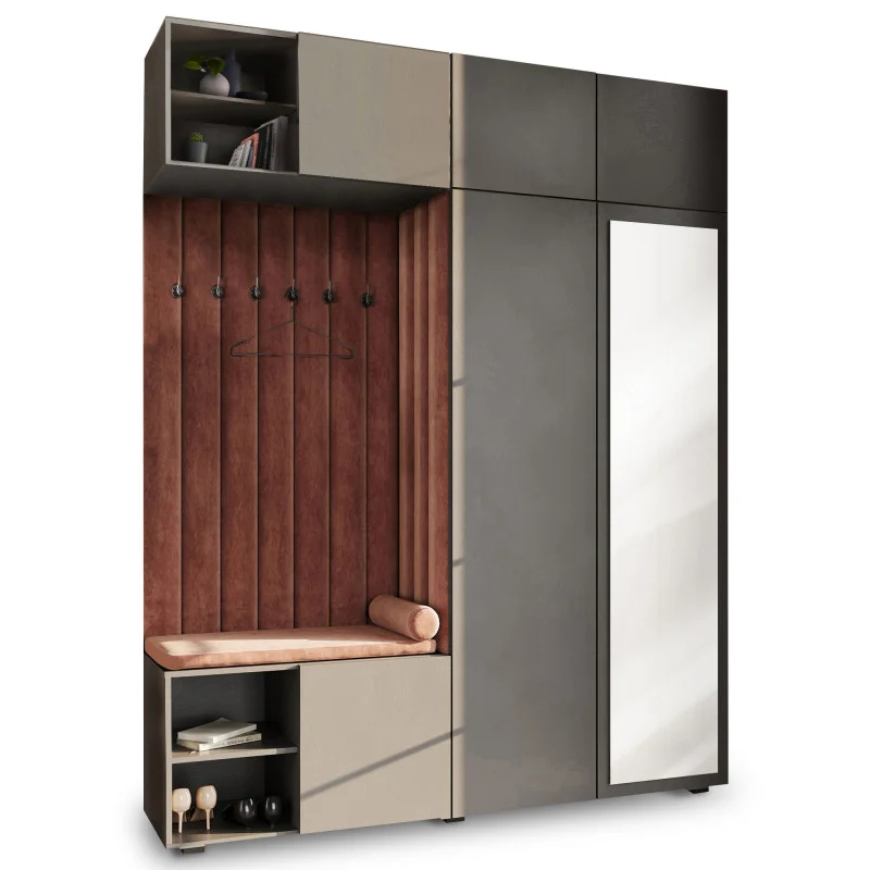 Garderoba Aria wersja 4 Szary z lustrem, nadstawką i szafką wiszącą PTO