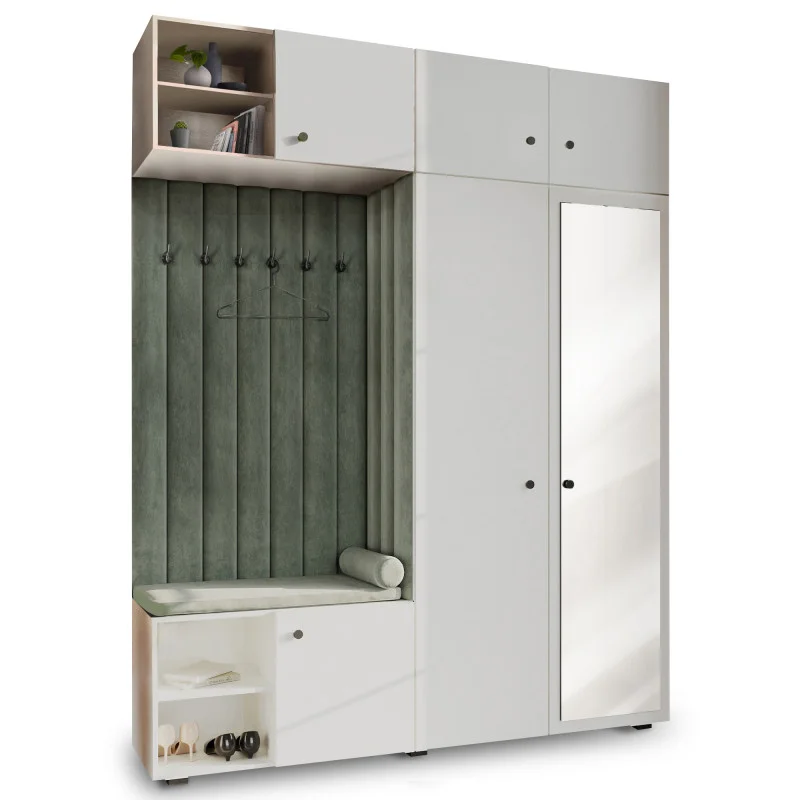 Garderoba Aria wersja 4 biała z lustrem, nadstawką i szafką wiszącą uchwyt gałka