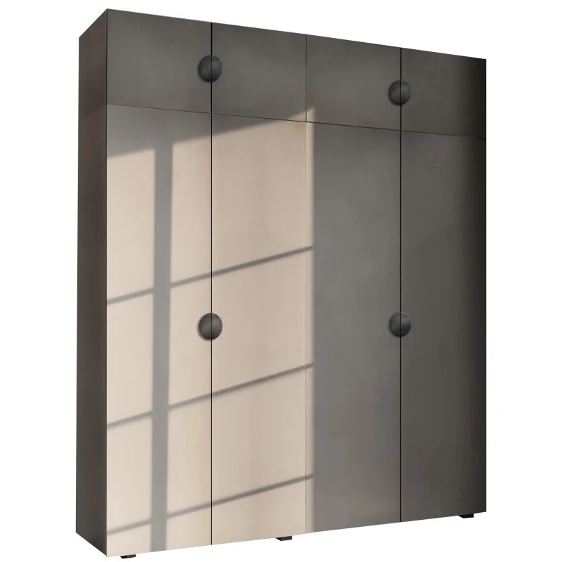 Szafa Garderoba uchylna podwójna Aria 180 szary pallad GZ uchwyt półokrągły czarna z nadstawką