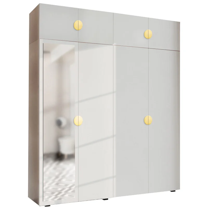 Szafa Garderoba uchylna podwójna Aria 180 biała GZ uchwyt półokrągły złota z nadstawką