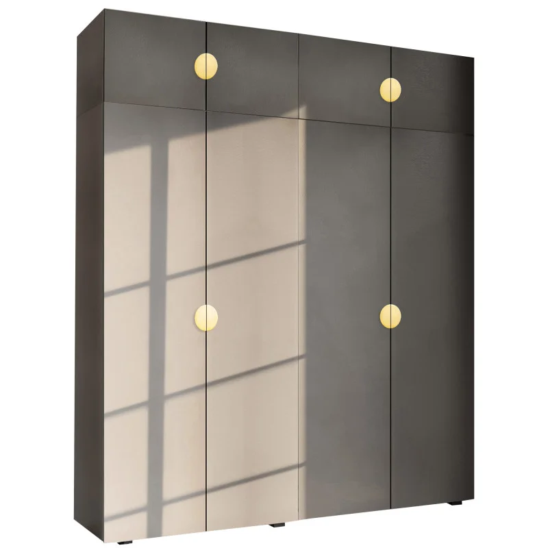 Szafa Garderoba uchylna podwójna Aria 180 szary pallad GZ uchwyt półokrągły złota z nadstawką